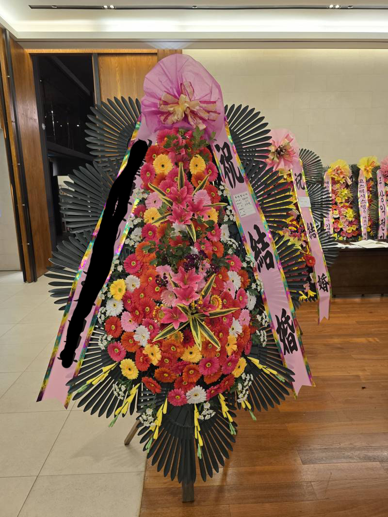 축하화환첨으로시켜봤는데이뿌네요 시간맞춰배송해주셔서고맙습니다 또이용할게요